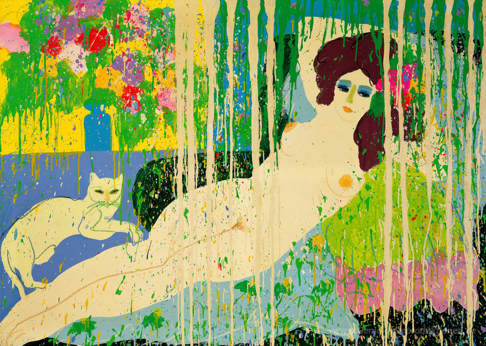 Wir bieten Ihnen eine handgefertigte Reproduktion auf Leinwand des berühmten Kunstwerks 'Goyas Liebhaber' von Walasse Ting, aus dem Reproduktionsmuseum.