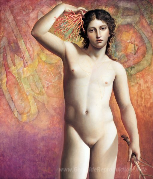 Wir bieten Ihnen eine handgefertigte Reproduktion auf Leinwand des berühmten Kunstwerks 'Il Corallo' von Carlo Maria Mariani, aus dem Reproduktionsmuseum.