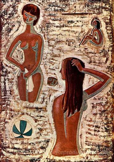 Wir bieten Ihnen eine handgefertigte Reproduktion auf Leinwand des berühmten Kunstwerks 'Il Pallone a Spicchi Bianchi e Verdi (Fanciulle al Mare)' von Mario Tozzi, aus dem Reproduktionsmuseum.