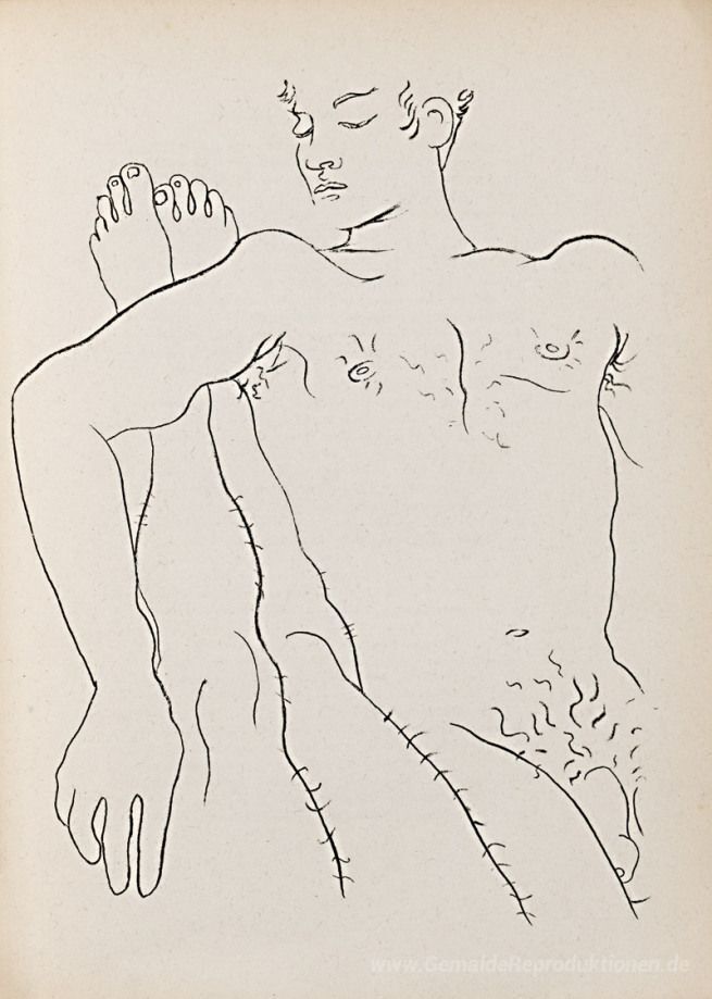 Wir bieten Ihnen eine handgefertigte Reproduktion auf Leinwand des berühmten Kunstwerks 'Illustration für Jean Genets "Querelle de Brest '' von Jean Cocteau, aus dem Reproduktionsmuseum.