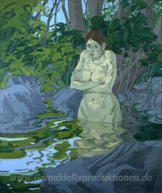 Wir bieten Ihnen eine handgefertigte Reproduktion auf Leinwand des berühmten Kunstwerks 'Kalte Claudia' von Neil Welliver, aus dem Reproduktionsmuseum.