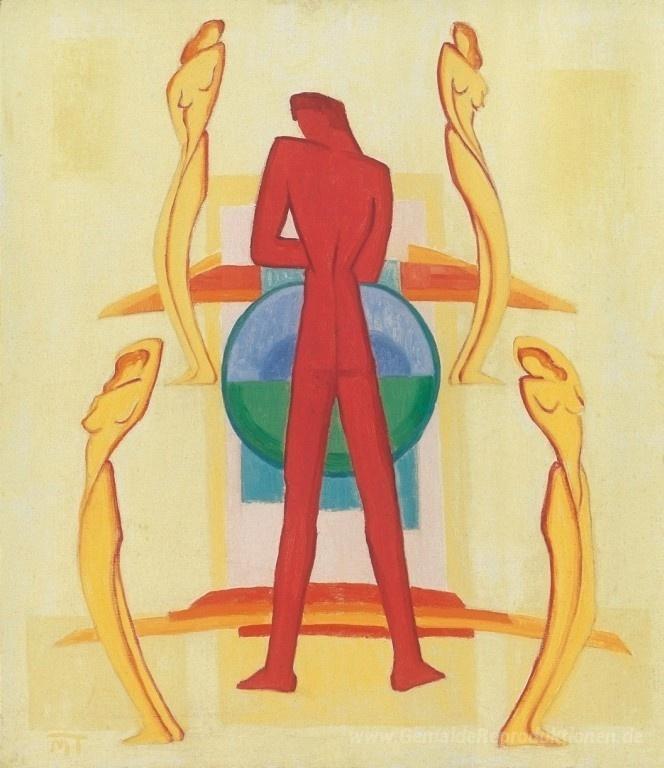 Wir bieten Ihnen eine handgefertigte Reproduktion auf Leinwand des berühmten Kunstwerks 'Komposition mit fünf Zahlen' von Janos Mattis-Teutsch, aus dem Reproduktionsmuseum.