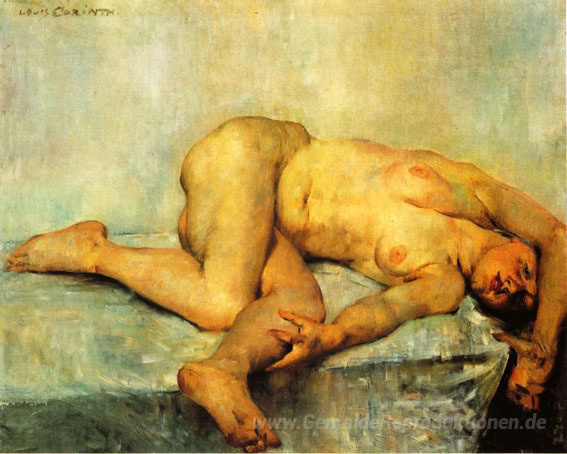 Wir bieten Ihnen eine handgefertigte Reproduktion auf Leinwand des berühmten Kunstwerks 'Liegender Frauenakt' von Lovis Corinth, aus dem Reproduktionsmuseum.