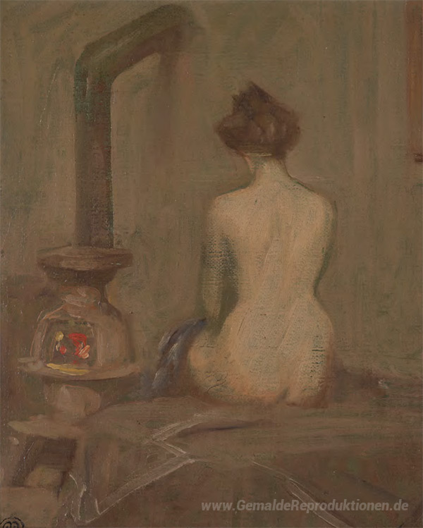 Wir bieten Ihnen eine handgefertigte Reproduktion auf Leinwand des berühmten Kunstwerks 'Mädchen Dressing' von Xavier Martinez, aus dem Reproduktionsmuseum.