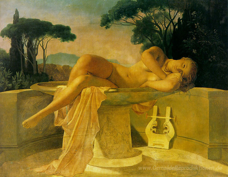 Wir bieten Ihnen eine handgefertigte Reproduktion auf Leinwand des berühmten Kunstwerks 'Mädchen in einem Becken' von Paul Delaroche, aus dem Reproduktionsmuseum.