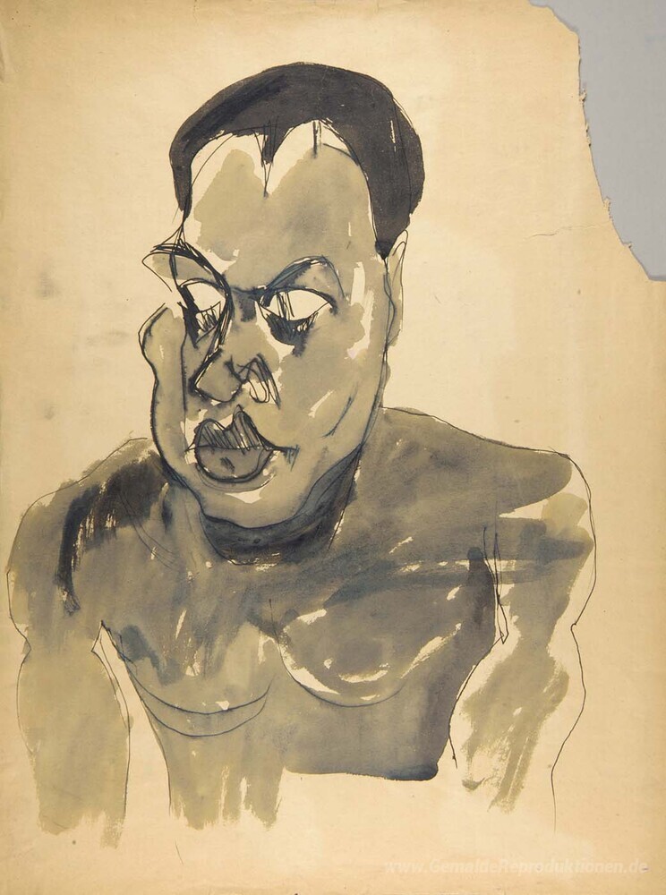 Wir bieten Ihnen eine handgefertigte Reproduktion auf Leinwand des berühmten Kunstwerks 'Männlicher Akt - Portrait Bust' von William H. Johnson, aus dem Reproduktionsmuseum.