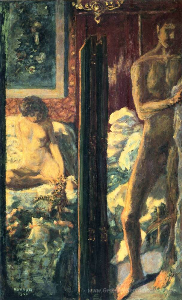 Wir bieten Ihnen eine handgefertigte Reproduktion auf Leinwand des berühmten Kunstwerks 'Mann und Frau' von Pierre Bonnard, aus dem Reproduktionsmuseum.