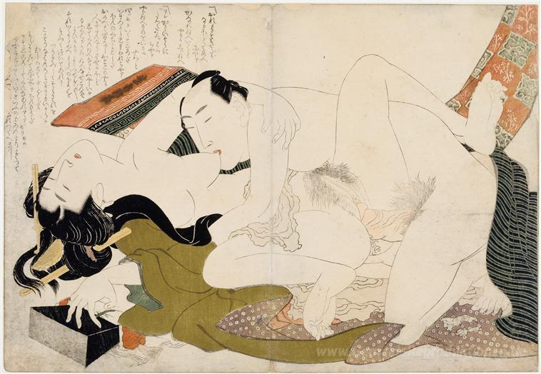 Wir bieten Ihnen eine handgefertigte Reproduktion auf Leinwand des berühmten Kunstwerks 'Models Umarmungen' von Katsushika Hokusai, aus dem Reproduktionsmuseum.