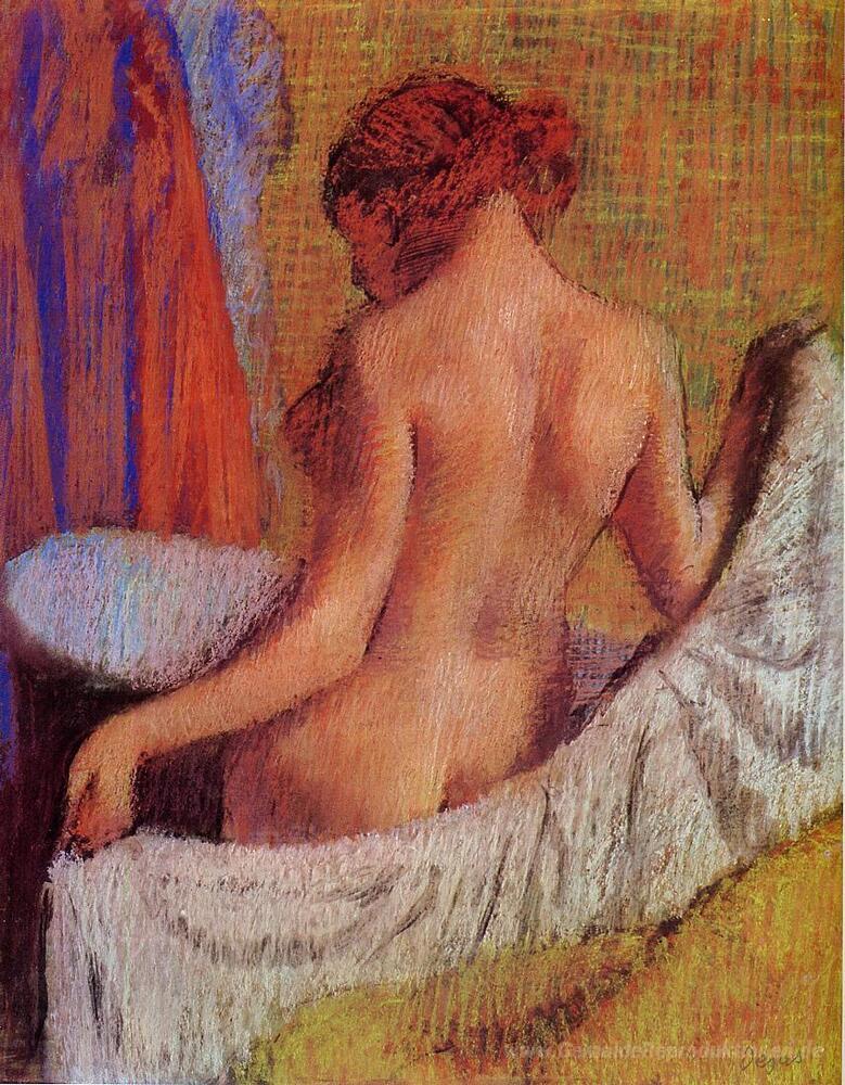 Wir bieten Ihnen eine handgefertigte Reproduktion auf Leinwand des berühmten Kunstwerks 'Nach dem Bade' von Edgar Degas, aus dem Reproduktionsmuseum.