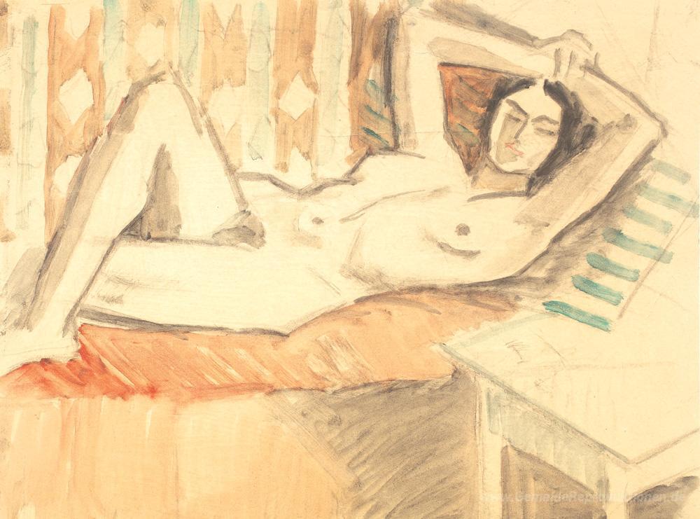 Wir bieten Ihnen eine handgefertigte Reproduktion auf Leinwand des berühmten Kunstwerks 'Nackt auf der Couch' von Theodor Pallady, aus dem Reproduktionsmuseum.
