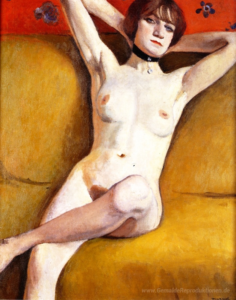 Wir bieten Ihnen eine handgefertigte Reproduktion auf Leinwand des berühmten Kunstwerks 'Nackt auf einem Divan' von Albert Marquet, aus dem Reproduktionsmuseum.