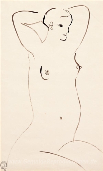 Wir bieten Ihnen eine handgefertigte Reproduktion auf Leinwand des berühmten Kunstwerks 'Nackt' von Sanyu, aus dem Reproduktionsmuseum.