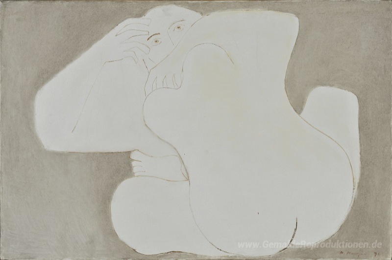 Wir bieten Ihnen eine handgefertigte Reproduktion auf Leinwand des berühmten Kunstwerks 'Nackt' von Nikos Nikolaou, aus dem Reproduktionsmuseum.