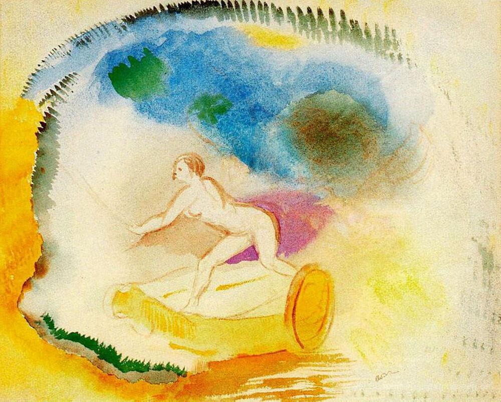 Wir bieten Ihnen eine handgefertigte Reproduktion auf Leinwand des berühmten Kunstwerks 'Nackte Frau auf einem Auto' von Odilon Redon, aus dem Reproduktionsmuseum.