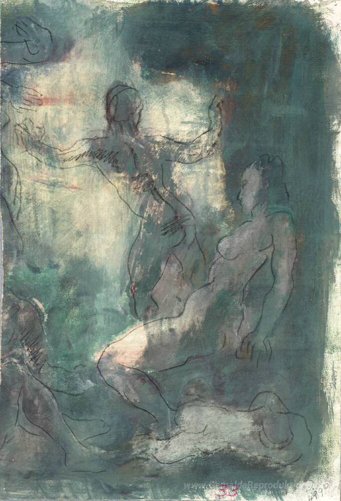 Wir bieten Ihnen eine handgefertigte Reproduktion auf Leinwand des berühmten Kunstwerks 'Nackten Figuren in einem Raum' von Alexandre Jacovleff, aus dem Reproduktionsmuseum.