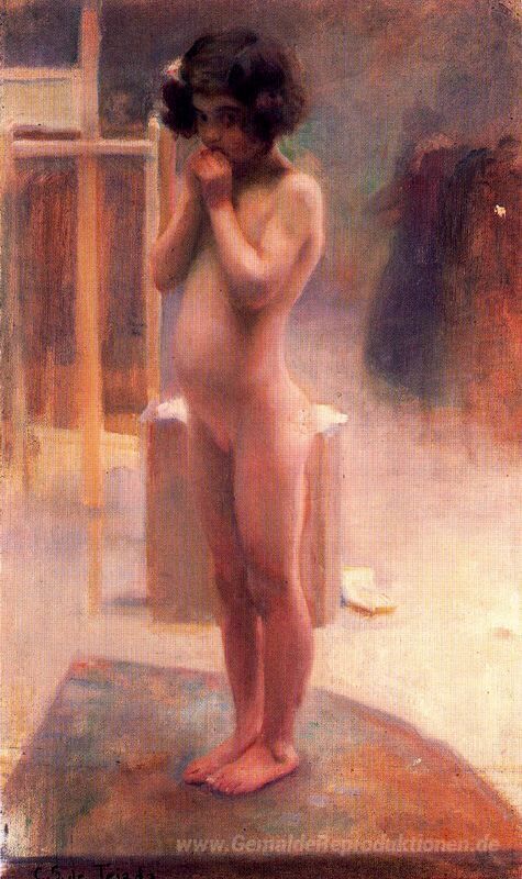 Wir bieten Ihnen eine handgefertigte Reproduktion auf Leinwand des berühmten Kunstwerks 'Nacktes Mädchen' von Carlos Saenz de Tejada, aus dem Reproduktionsmuseum.