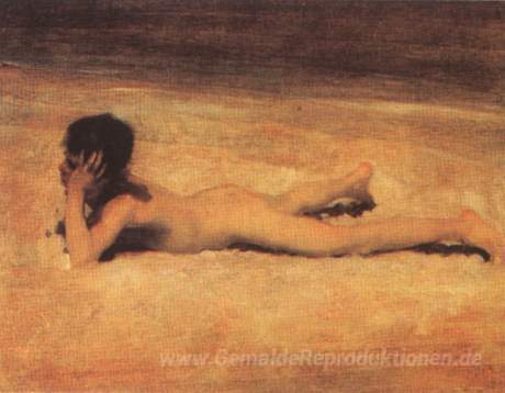 Wir bieten Ihnen eine handgefertigte Reproduktion auf Leinwand des berühmten Kunstwerks 'Naked Junge auf dem Strand' von John Singer Sargent, aus dem Reproduktionsmuseum.