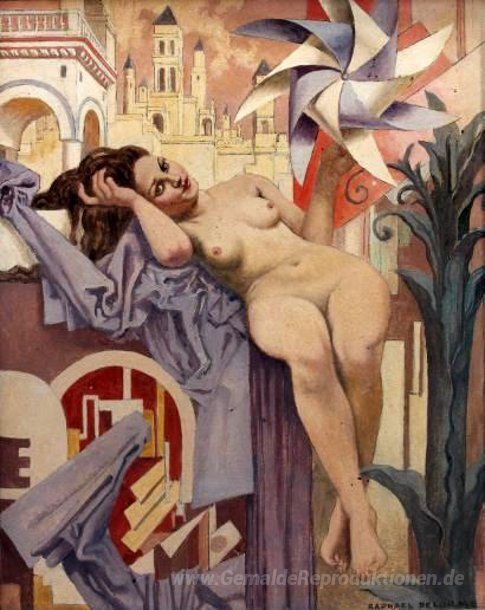 Wir bieten Ihnen eine handgefertigte Reproduktion auf Leinwand des berühmten Kunstwerks 'Nu assis au drapé et au moulin à vent' von Raphael Delorme, aus dem Reproduktionsmuseum.