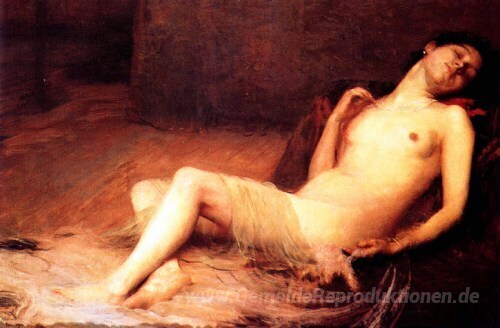 Wir bieten Ihnen eine handgefertigte Reproduktion auf Leinwand des berühmten Kunstwerks 'Nu Deitado' von Eliseu Visconti, aus dem Reproduktionsmuseum.