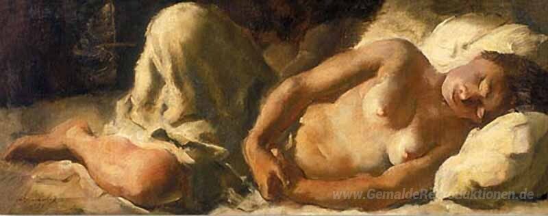 Wir bieten Ihnen eine handgefertigte Reproduktion auf Leinwand des berühmten Kunstwerks 'Nu Schlaf' von Alexandre Jacovleff, aus dem Reproduktionsmuseum.