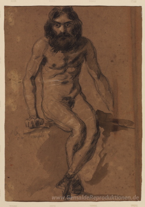 Wir bieten Ihnen eine handgefertigte Reproduktion auf Leinwand des berühmten Kunstwerks 'Nude bärtiger Mann, sitzend' von Eugene Delacroix, aus dem Reproduktionsmuseum.