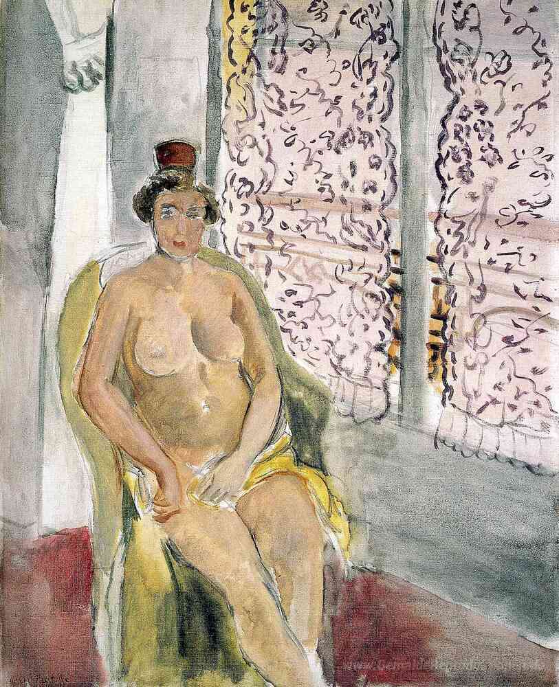 Wir bieten Ihnen eine handgefertigte Reproduktion auf Leinwand des berühmten Kunstwerks 'Nude In Einem Stuhl' von Henri Matisse, aus dem Reproduktionsmuseum.