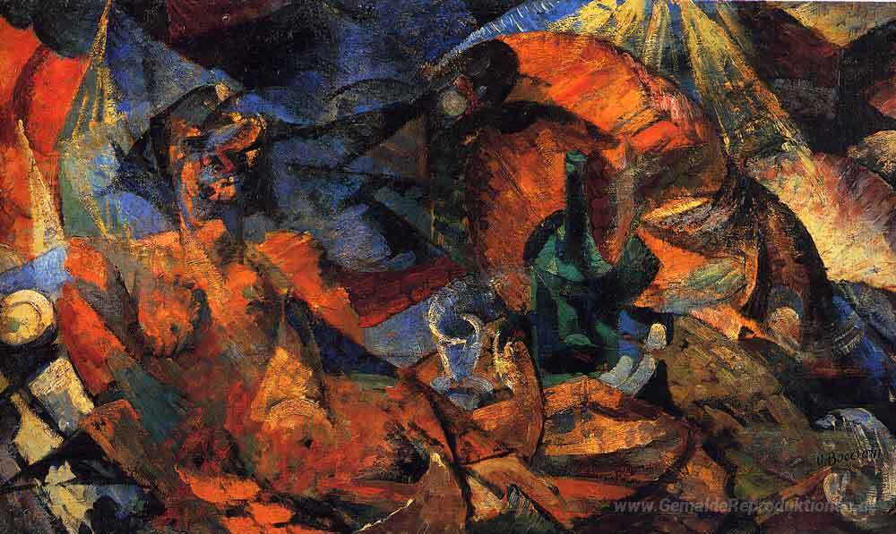 Wir bieten Ihnen eine handgefertigte Reproduktion auf Leinwand des berühmten Kunstwerks 'Nude (Komplementärmodell Form-Farbe)' von Umberto Boccioni, aus dem Reproduktionsmuseum.