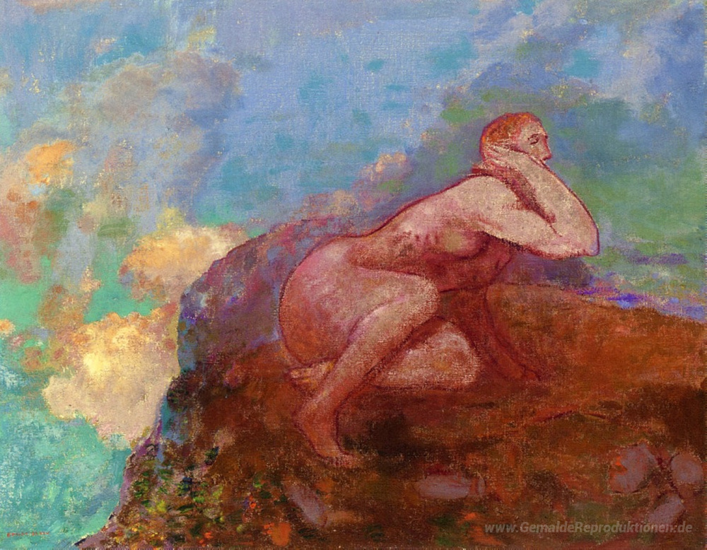 Wir bieten Ihnen eine handgefertigte Reproduktion auf Leinwand des berühmten Kunstwerks 'Nude Woman on the Rocks' von Odilon Redon, aus dem Reproduktionsmuseum.