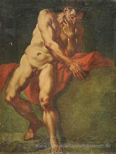 Wir bieten Ihnen eine handgefertigte Reproduktion auf Leinwand des berühmten Kunstwerks 'Nudo maschile' von Giulia Lama, aus dem Reproduktionsmuseum.