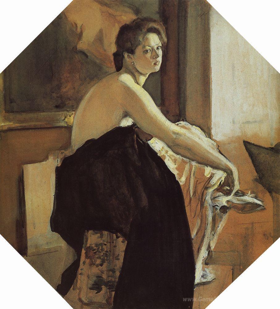 Wir bieten Ihnen eine handgefertigte Reproduktion auf Leinwand des berühmten Kunstwerks 'Porträt von Yelena Oliv' von Valentin Serov, aus dem Reproduktionsmuseum.