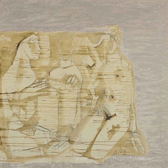 Wir bieten Ihnen eine handgefertigte Reproduktion auf Leinwand des berühmten Kunstwerks 'Rajasthani Frauen' von M.F. Husain, aus dem Reproduktionsmuseum.
