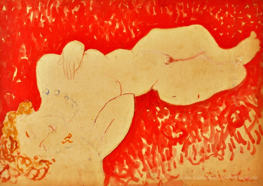 Wir bieten Ihnen eine handgefertigte Reproduktion auf Leinwand des berühmten Kunstwerks 'Red Nude' von George Stefanescu-Ramnic , aus dem Reproduktionsmuseum.