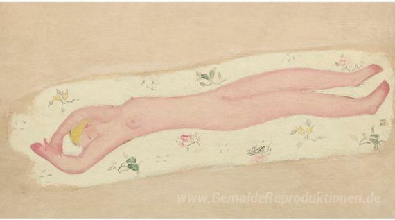 Wir bieten Ihnen eine handgefertigte Reproduktion auf Leinwand des berühmten Kunstwerks 'Rosa Akt auf Blumenblatt' von Sanyu, aus dem Reproduktionsmuseum.