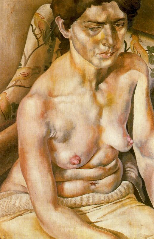 Wir bieten Ihnen eine handgefertigte Reproduktion auf Leinwand des berühmten Kunstwerks 'Seated Nude' von Stanley Spencer, aus dem Reproduktionsmuseum.
