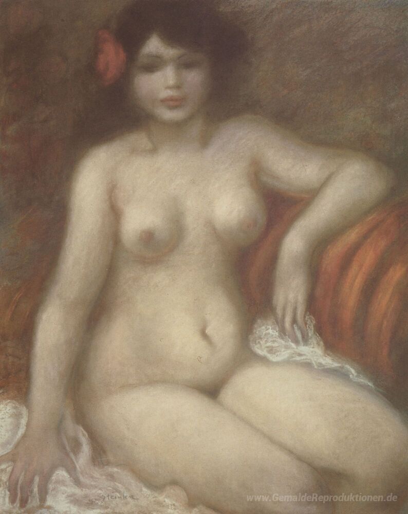 Wir bieten Ihnen eine handgefertigte Reproduktion auf Leinwand des berühmten Kunstwerks 'Seated Nude' von Theophile Steinlen, aus dem Reproduktionsmuseum.