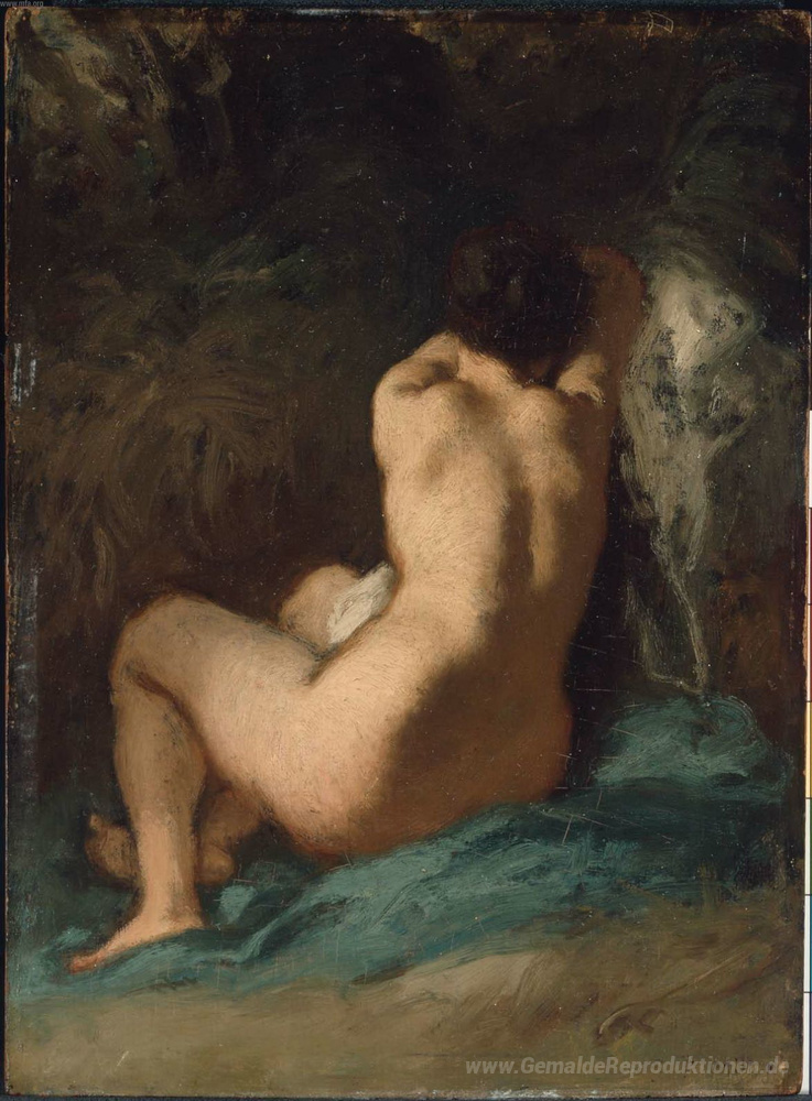Wir bieten Ihnen eine handgefertigte Reproduktion auf Leinwand des berühmten Kunstwerks 'Seated Nude' von Jean-Francois Millet, aus dem Reproduktionsmuseum.