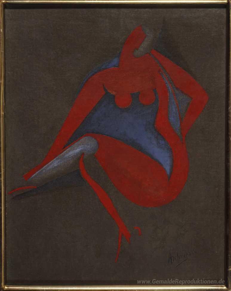 Wir bieten Ihnen eine handgefertigte Reproduktion auf Leinwand des berühmten Kunstwerks 'Seated Nude' von Olexandr Archipenko, aus dem Reproduktionsmuseum.