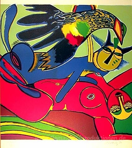 Wir bieten Ihnen eine handgefertigte Reproduktion auf Leinwand des berühmten Kunstwerks 'Sie gibt sich den Sommer' von Corneille, aus dem Reproduktionsmuseum.