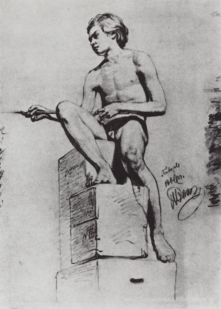 Wir bieten Ihnen eine handgefertigte Reproduktion auf Leinwand des berühmten Kunstwerks 'Sitzen Modell' von Ilya Repin, aus dem Reproduktionsmuseum.