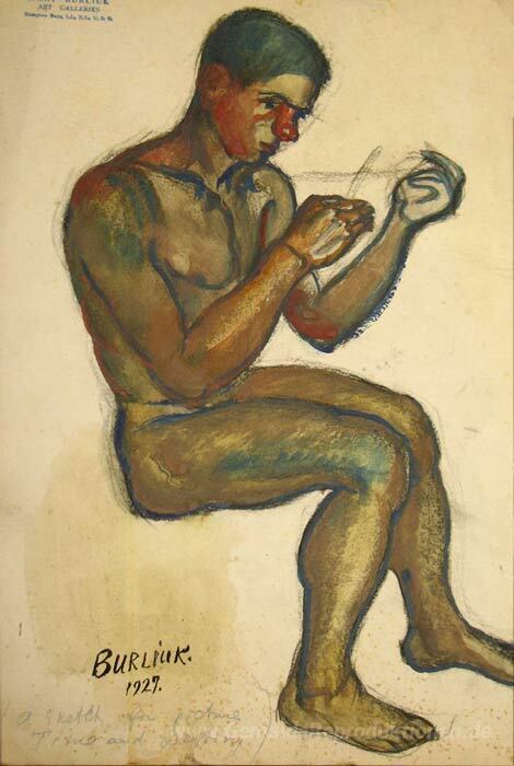 Wir bieten Ihnen eine handgefertigte Reproduktion auf Leinwand des berühmten Kunstwerks 'Sitzender junger Mann (Studie zu "Father Time")' von David Burliuk, aus dem Reproduktionsmuseum.