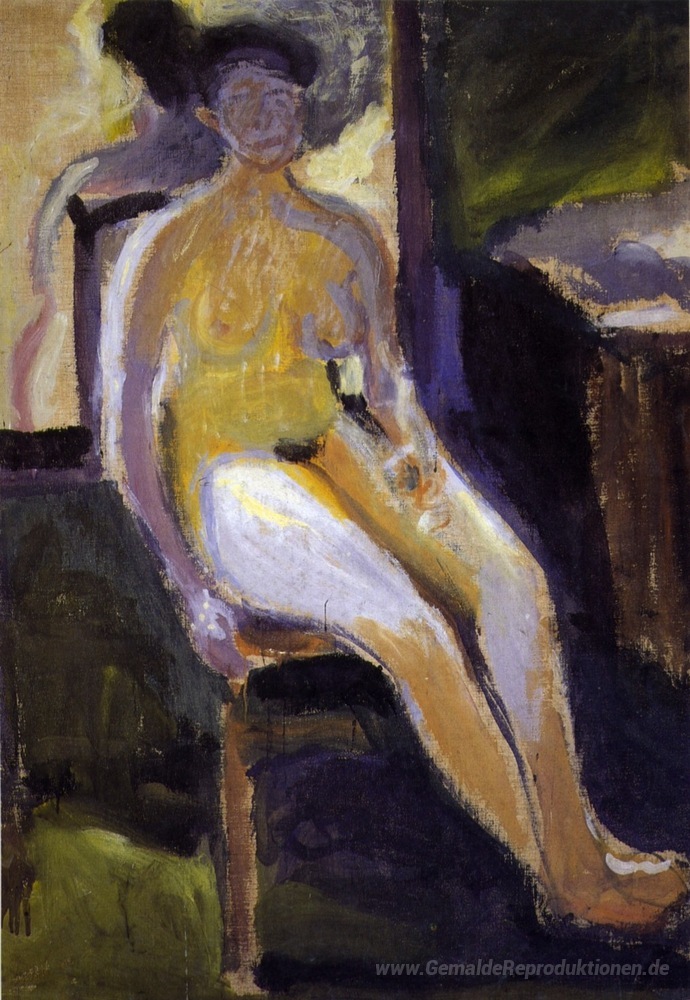 Wir bieten Ihnen eine handgefertigte Reproduktion auf Leinwand des berühmten Kunstwerks 'Sitzender weiblicher Akt' von Richard Gerstl, aus dem Reproduktionsmuseum.