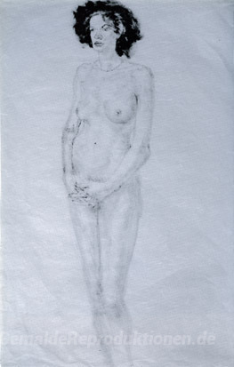 Wir bieten Ihnen eine handgefertigte Reproduktion auf Leinwand des berühmten Kunstwerks 'Stehende nackte Frau mit gekreuzten Fingern' von Avigdor Arikha, aus dem Reproduktionsmuseum.