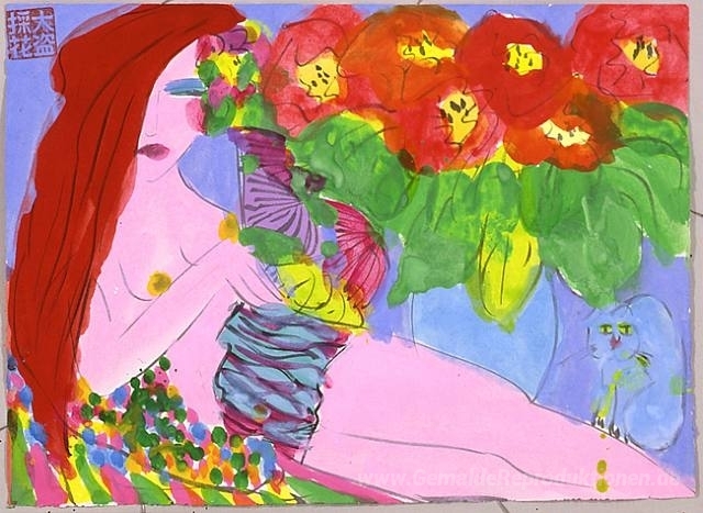 Wir bieten Ihnen eine handgefertigte Reproduktion auf Leinwand des berühmten Kunstwerks 'Warte immer noch auf dich' von Walasse Ting, aus dem Reproduktionsmuseum.