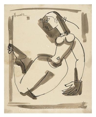 Wir bieten Ihnen eine handgefertigte Reproduktion auf Leinwand des berühmten Kunstwerks 'Weibliche Figur' von M.F. Husain, aus dem Reproduktionsmuseum.