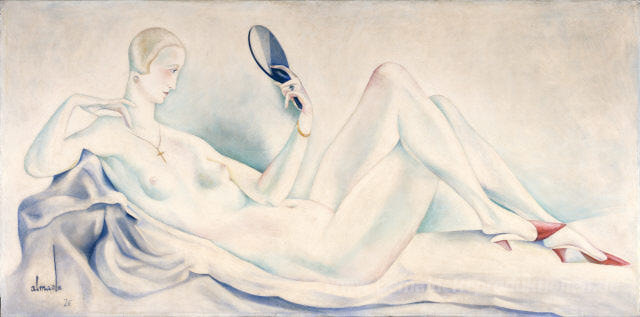 Wir bieten Ihnen eine handgefertigte Reproduktion auf Leinwand des berühmten Kunstwerks 'Weiblicher Akt (für die Dekoration von Bristol-Club)' von Jose de Almada-Negreiros, aus dem Reproduktionsmuseum.