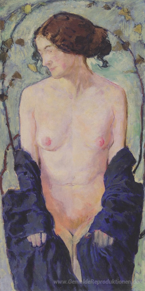 Wir bieten Ihnen eine handgefertigte Reproduktion auf Leinwand des berühmten Kunstwerks 'Weiblicher Akt mit blauem Tuch' von Koloman Moser, aus dem Reproduktionsmuseum.