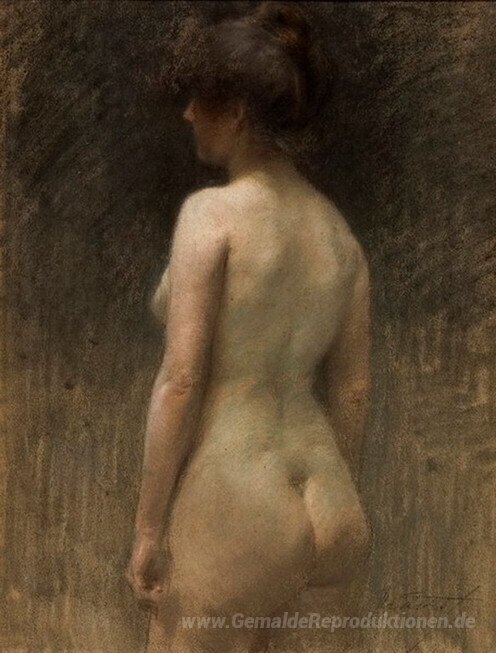Wir bieten Ihnen eine handgefertigte Reproduktion auf Leinwand des berühmten Kunstwerks 'Weiblicher Akt' von Paul Mathiopoulos, aus dem Reproduktionsmuseum.