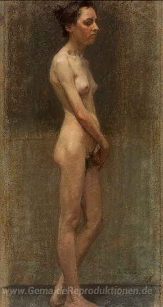 Wir bieten Ihnen eine handgefertigte Reproduktion auf Leinwand des berühmten Kunstwerks 'Weiblicher Akt' von Paul Mathiopoulos, aus dem Reproduktionsmuseum.