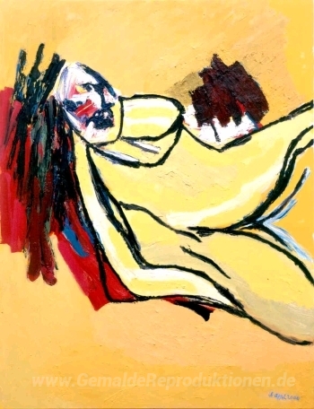 Wir bieten Ihnen eine handgefertigte Reproduktion auf Leinwand des berühmten Kunstwerks 'Yellow Nude' von Karel Appel, aus dem Reproduktionsmuseum.