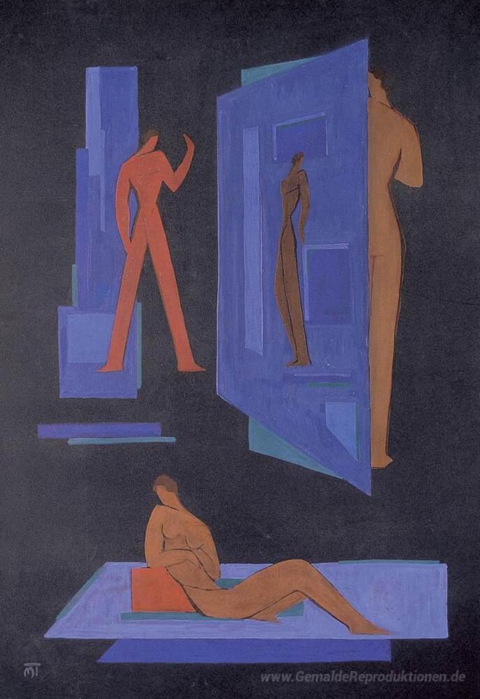 Wir bieten Ihnen eine handgefertigte Reproduktion auf Leinwand des berühmten Kunstwerks 'Zusammensetzung (Einstellungen)' von Janos Mattis-Teutsch, aus dem Reproduktionsmuseum.